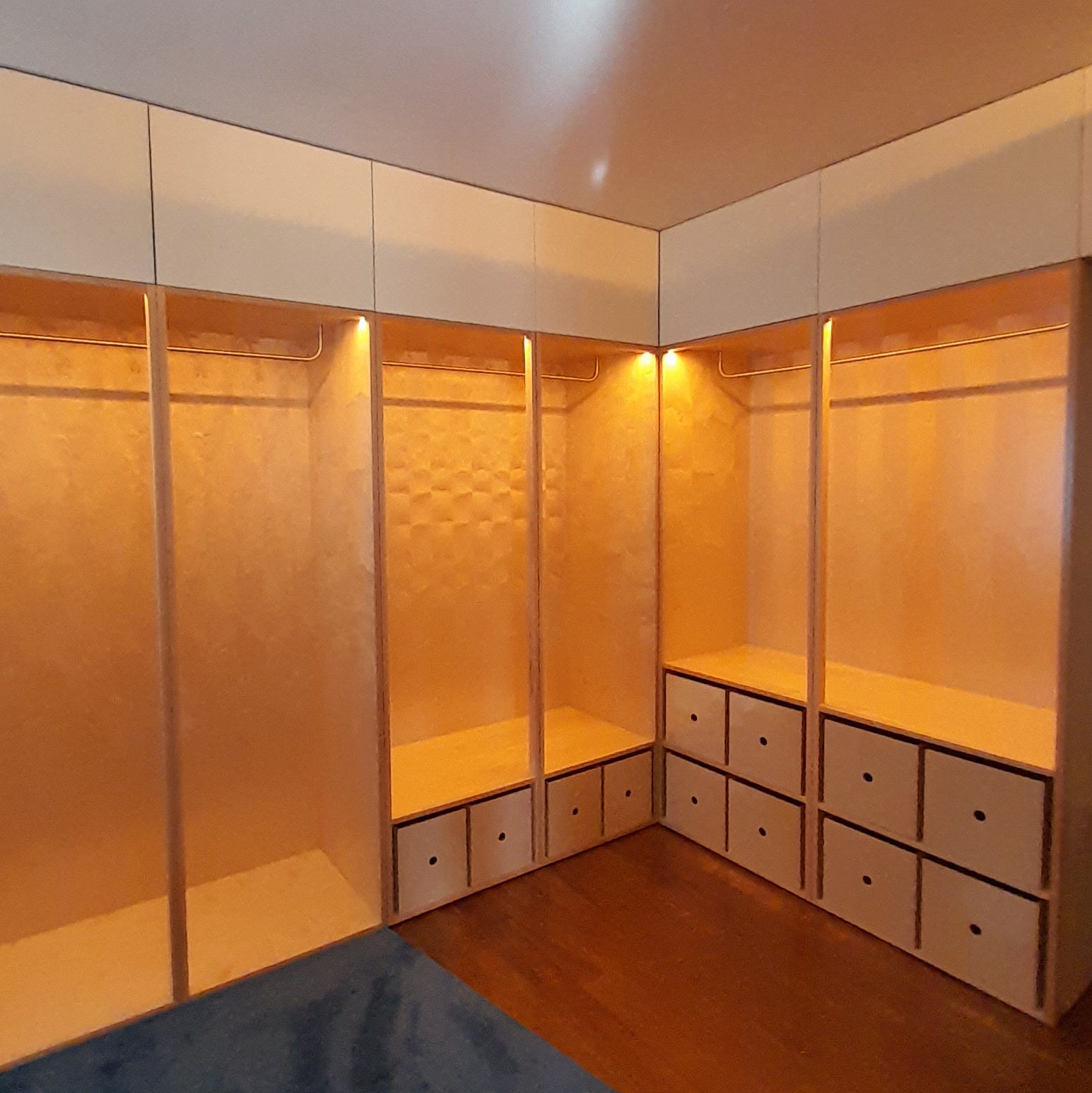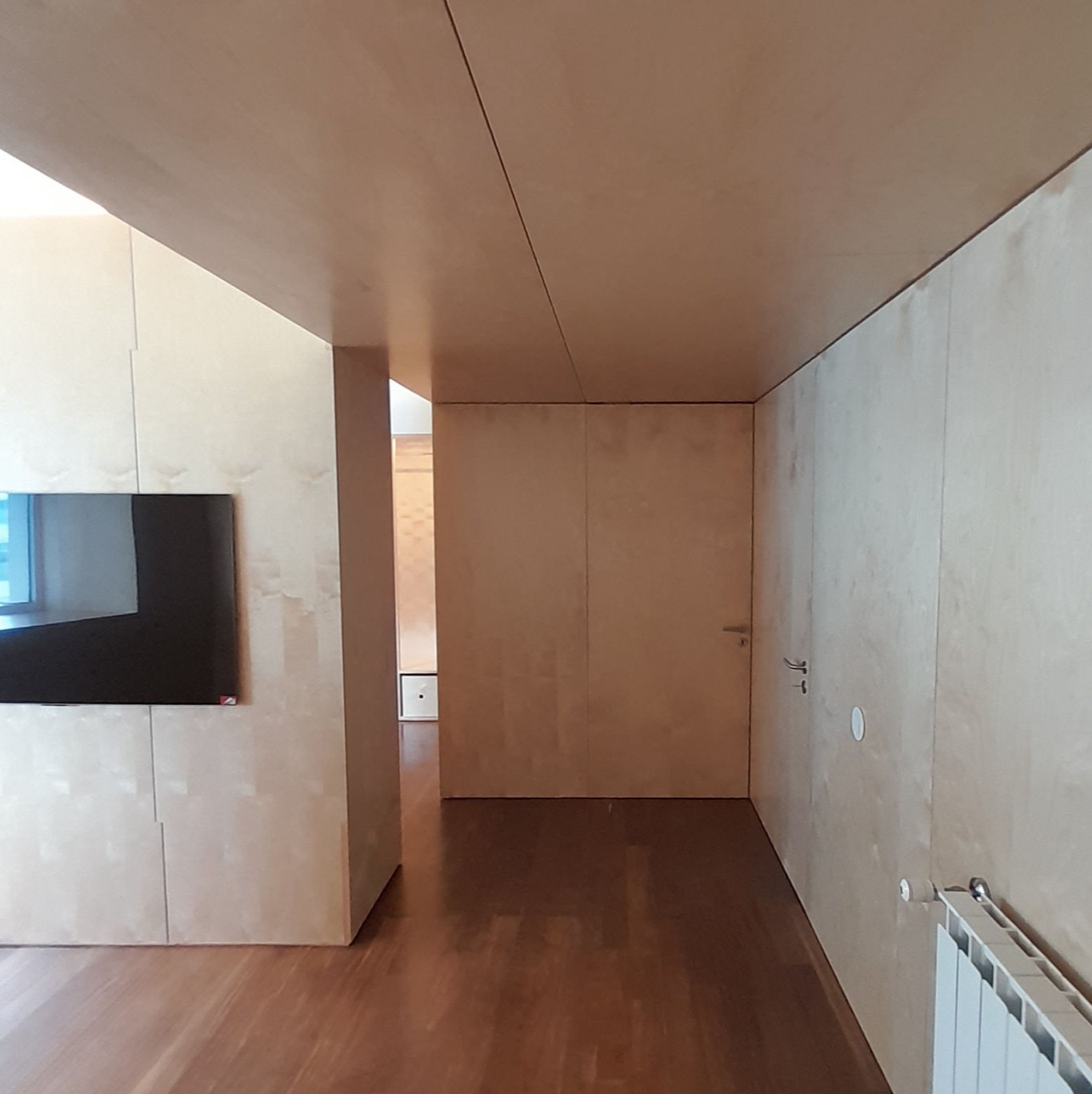 Reabilitação de apartamento T4, as paredes e as novas portas pivotantes foram revestidas com painéis de MDF folheado a Bétula, assim como os armários. Foi criado um closet com vários armários e em particular um toucador estes desenhados com o maior rigor de forma a satisfazer as necessidades do cliente. O escritório também foi alvo de intervenção, onde foram criadas estantes com um design atual, sem juntas à vista e também em madeira de Bétula.